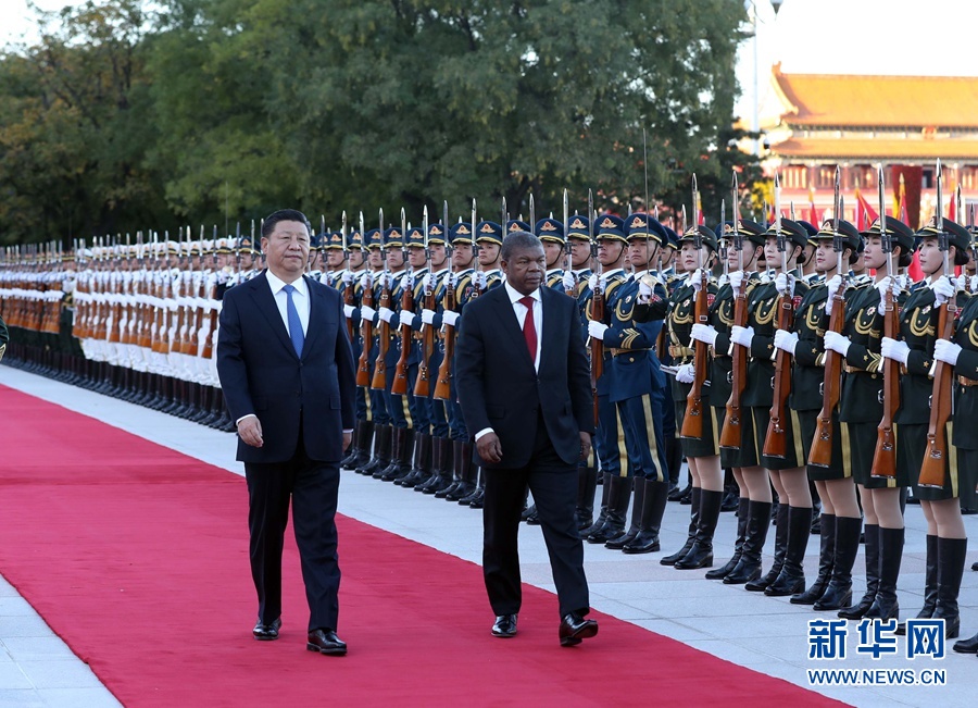 10月9日,國家主席習近平在北京人民大會堂同安哥拉總統洛倫索舉行會談。這是會談前,習近平在人民大會堂東門外廣場為洛倫索舉行歡迎儀式。 新華社記者姚大偉攝