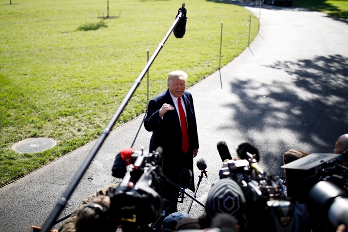 10月22日,在美國首都華盛頓,美國總統特朗普離開白宮前接受記者采訪。新華社發(沈霆攝)