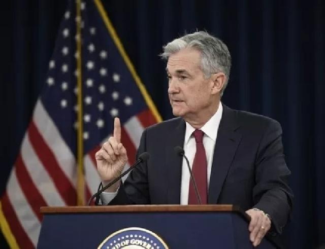 2018年12月19日,在美國首都華盛頓,美國聯邦儲備委員會主席鮑威爾在新聞發布會上講話。 新華社記者 劉杰 攝