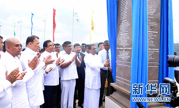 當天上午,斯里蘭卡總統西里塞納為拉格勒鎮石碑揭幕,宣布小鎮正式落成。隨后,西里塞納為K壩項目主體工程完工紀念碑揭幕,并對中國企業的付出表示感謝。