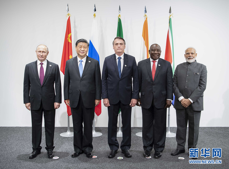 6月28日,金磚國家領導人會晤在大阪舉行。國家主席習近平、巴西總統博索納羅、俄羅斯總統普京、印度總理莫迪、南非總統拉馬福薩出席。 新華社記者 李濤 攝