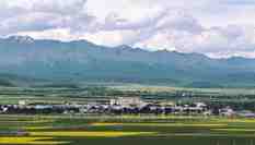 甘肅祁連山“雪頂”與萬畝油菜花交相輝映