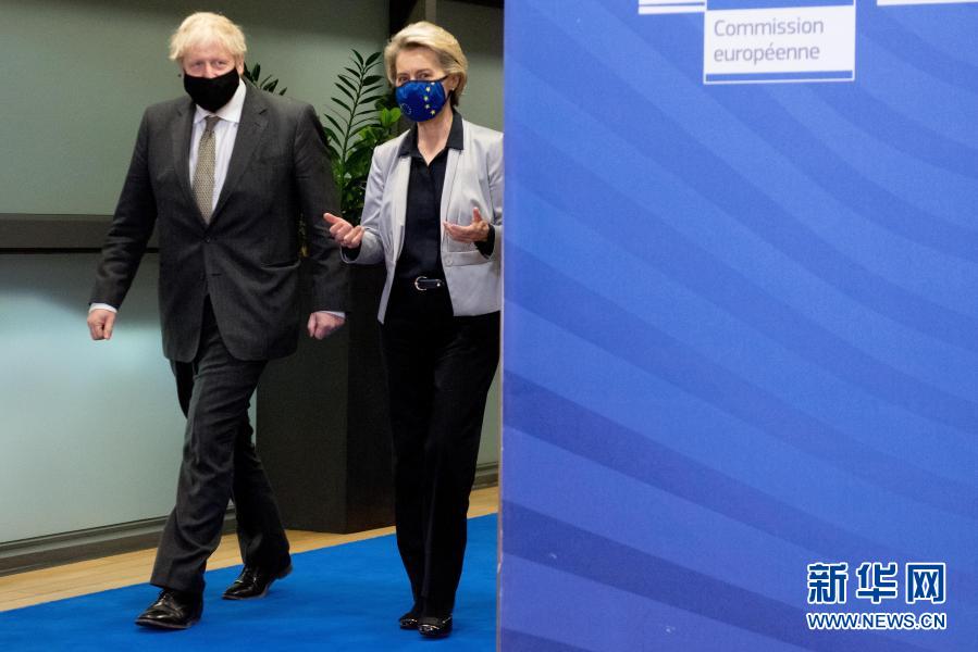 12月9日,英國首相約翰遜(左)與歐盟委員會主席馮德萊恩抵達比利時布魯塞爾的歐盟總部,準備進行會晤。新華社發(歐盟供圖)