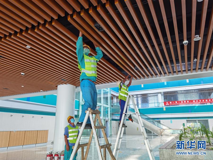 12月16日,在馬爾代夫馬累,機電施工人員在維拉納國際機場水飛航站樓內進行設備調修。新華社發(北京城建集團供圖)